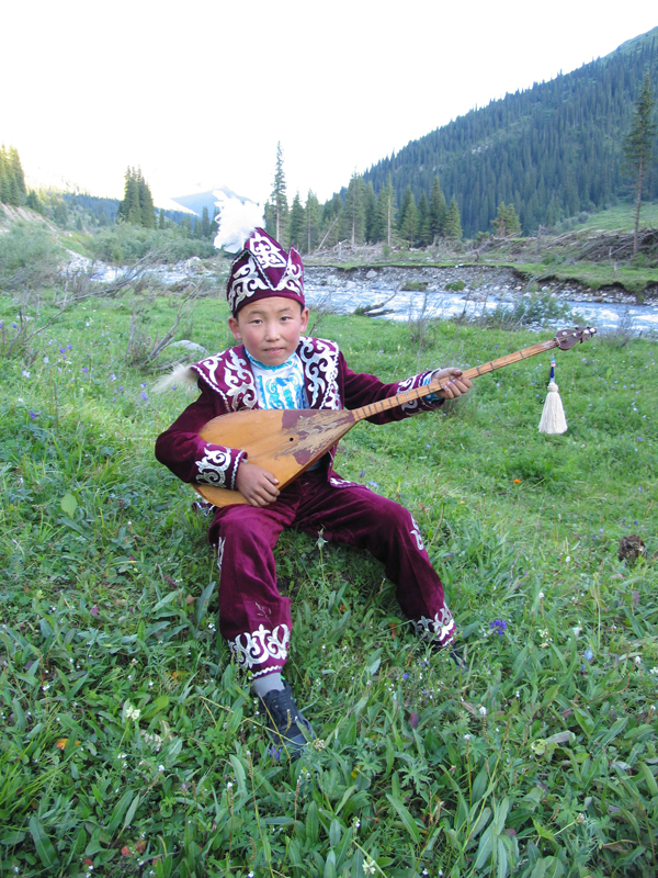 哈薩克族的音樂極具民族特色,樂器種類和樂曲形式也非常豐富?!岸焕睘閺椬鄻菲?,是哈薩克族民間最流行的傳統(tǒng)樂器,分為高、中、低等十幾種。冬不拉易學(xué)易帶,深受廣大哈薩克族人民的喜愛。拉奏樂器以“柯布孜”為代表,演奏起來聲音類似小提琴,但形狀要比小提琴復(fù)雜,其上端向里彎,琴腹如勺,腹面張開,背面蒙有羊皮,琴弦是用馬尾或牛筋制做而成的。吹奏樂器主要有“斯伯孜俄”,民間藝人喜好并擅長使用此物,被哈薩克族譽(yù)為“心笛”。這種樂器外形酷似豎簫,音色悠揚(yáng)而柔和。哈薩克族的打擊樂器也有很多,極有特色的是“阿迪托亞克”。這種打擊樂器由兩個(gè)組成一對,演奏時(shí)互相擊打,其外形似馬蹄,加之所奏出的效果也像馬蹄踩在地面上的聲音,哈薩克族稱之為“馬蹄音”。