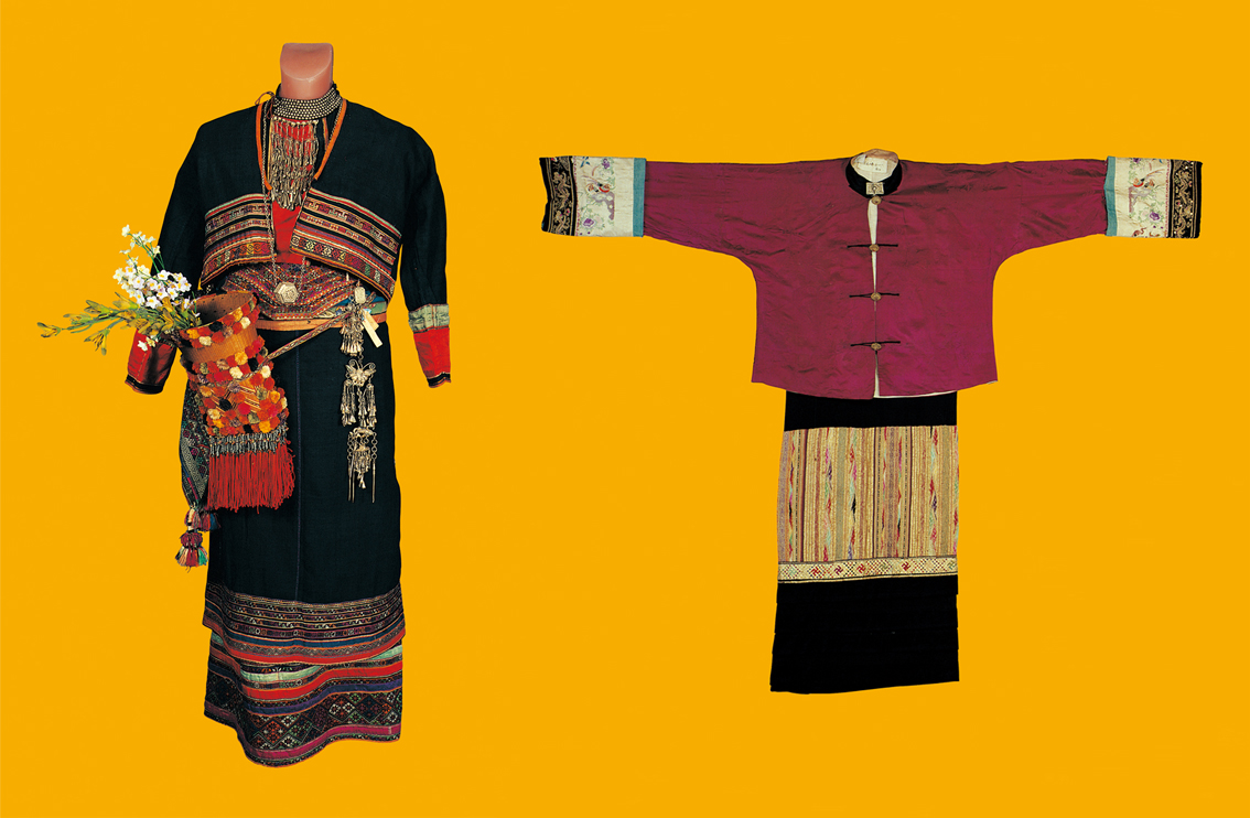 元江傣族民國時期銀泡土布女服與德宏傣族民國時期花綢織錦男服
