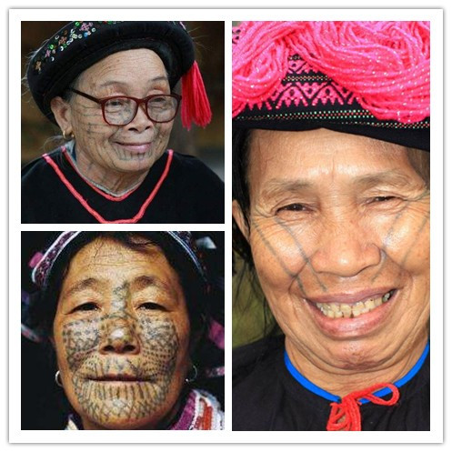最重要的文刺部位是頰和頦,特別是頰部,幾乎是每個紋身者必不可少的文刺部位。臉部兩頰的紋圖代表“?;辍?,上唇的紋圖代表“吉利”,下唇的紋圖代表“多?!保直凵系募y圖代表“平安”,胸上的紋圖,代表“財富、多子多?!?,大腿上的紋圖等代表“避邪護身”。