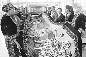 歷時(shí)一年時(shí)間織造,長(zhǎng)186.7米黎族民俗風(fēng)情長(zhǎng)卷織錦壁掛《錦繡黎家》,日前喜獲上海大世界基尼斯世界紀(jì)錄證書,成為世界織錦項(xiàng)目之最。這幅黎錦長(zhǎng)卷由海南省民族研究所織錦工藝研究人員設(shè)計(jì),五指山鑫達(dá)民族織錦旅游開發(fā)中心于2012年4月初,在三亞檳榔河國際鄉(xiāng)村文化旅游區(qū)開始織造工作。