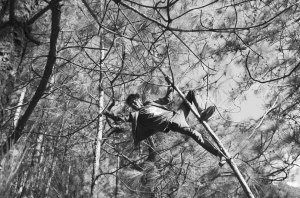 此外,如碗口粗的松樹是最好搖蕩的,太粗的樹枝彈性不好,太細(xì)的樹枝又承受不了人體之重。至于距離,樹與樹之間伸手可及是最好攀爬的,但相隔四五米遠(yuǎn)的樹也能扳彎身處的樹木蕩過去。