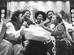 2008年,阿玻赴美國參加聯(lián)合國之春藝術節(jié)的演出。在匹茲堡,有一位70多歲的老太太觀看了阿玻參加的3場演出。她對阿玻說:“雖然我沒有去過你的家鄉(xiāng),也聽不懂你唱的歌詞,但是透過你的歌聲我能想象到,你的家鄉(xiāng)一定有雪山、草地、牛羊,有溫暖的陽光,那一定是個美麗的地方?!卑⒉5男脑谀且豢填潉恿恕Kf:“在美國,我用納西語演唱了《夢中的香格里拉》。雖然語言不通,但是人們還這么懂我的歌,讓我很感動?!?/p>