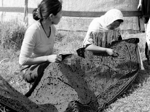刺繡的柯爾克孜女人