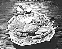 撒嘎當(dāng),即螃蟹剁生。以新鮮螃蟹為主要原料,配以糊辣椒粉、姜末、蒜泥、芫荽、南瓜籽、炒米面等佐料調(diào)制。加工時(shí),將螃蟹敲死放在火塘中翻燒至熟,去掉硬殼后剁細(xì)成泥狀,加適量食鹽、糊辣椒末、蒜泥、熟南瓜子面、炒米面調(diào)拌均勻即成。這道菜味香、辣、鮮,用糯米飯蘸吃,或用蘿卜、白菜、水薄荷、野芹菜等蘸吃均可。