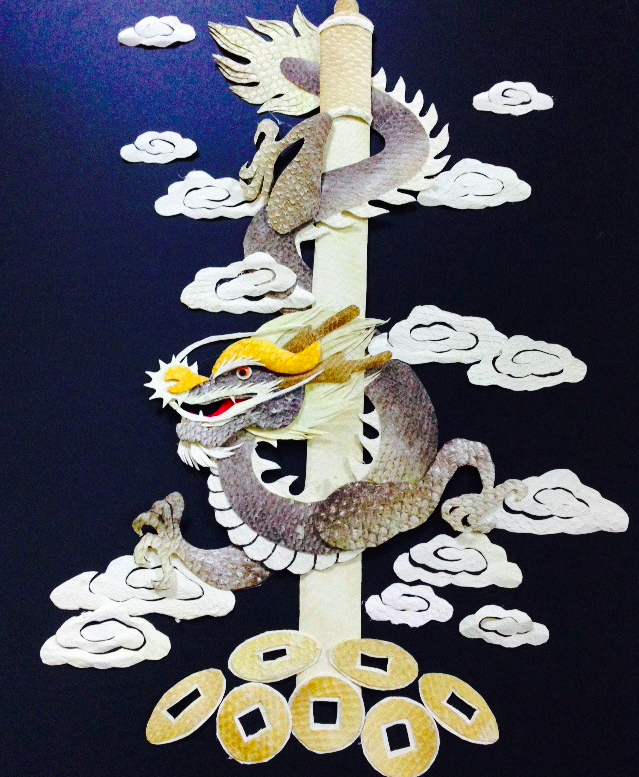制作魚皮畫,首先必須對魚皮進行加工處理。手工費時大約3天,要經過剝制,晾干去鱗、晾曬魚皮、捶熟、漂色等許多細致環(huán)節(jié)。魚皮畫分為粘貼和鏤刻兩種。粘貼畫制作相對來說較為容易,先勾勒出初稿,然后選好底襯,再選適當的魚皮進行剪制。這一步驟特別重要,首先要確定要粘貼的部位,來選則魚皮的顏色,剪完之后,就可往底紙進行粘貼了,一幅魚皮畫也就完成了。內容一般生活方面的事物,還有動物、人物等等。魚皮鏤刻是先選好魚皮,一般都是選擇比較大的魚皮,有陰刻和陽刻兩種,在魚皮的反面進行勾畫(也可直接剪制 ) 經過剪刻完成。