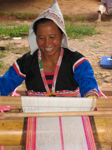 基諾族豎線花紋的衣料是獨具民族特色的基諾族織錦“砍刀布”。