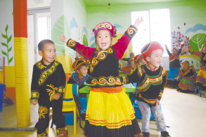 涼山州雷波縣汶水鎮(zhèn)馬處哈三峽新村幼教點(diǎn),孩子們在快樂地玩耍。冷文浩攝
