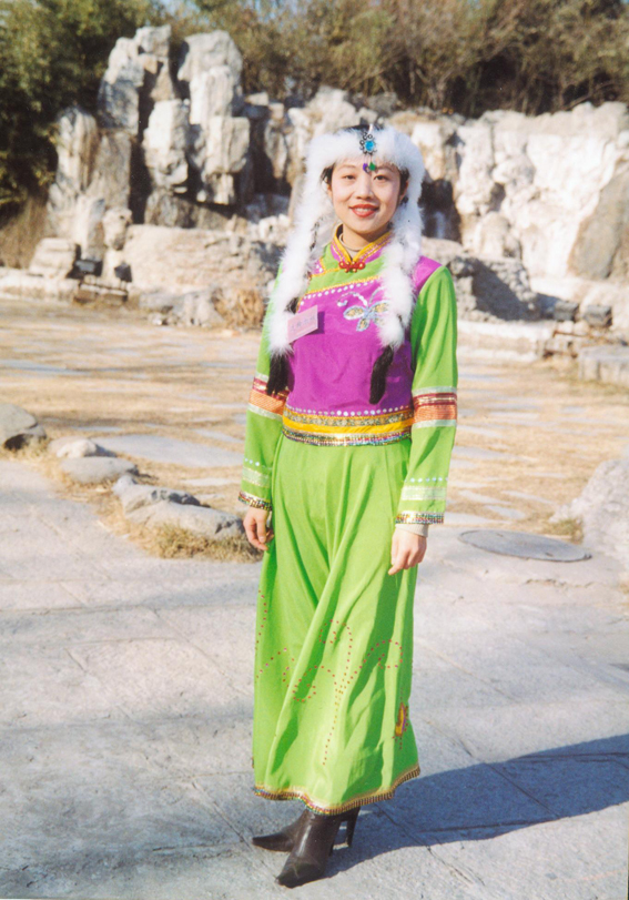 女服外套以短矮圓領(lǐng)右衽式長(zhǎng)袍為主,禮儀場(chǎng)合在長(zhǎng)袍上著綢緞坎肩。新疆塔城地區(qū)的達(dá)斡爾族婦女因受當(dāng)?shù)貗D女服飾習(xí)慣的影響,喜愛(ài)穿用淡紅和綠色的服飾。海拉爾地區(qū)的達(dá)斡爾族婦女所穿的夏季袍為立領(lǐng),袍身上窄下寬,長(zhǎng)至腳面,下擺無(wú)衩,右衽布排扣至膝以下,類似蒙古袍。