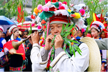 大理青山成年禮上的白族少女頭飾