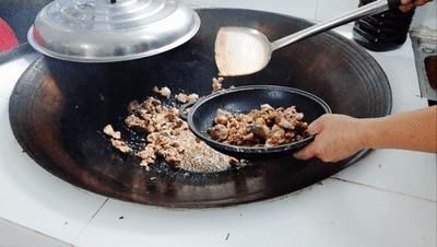 滿(mǎn)滿(mǎn)的一大勺菜油燒得清香四起。