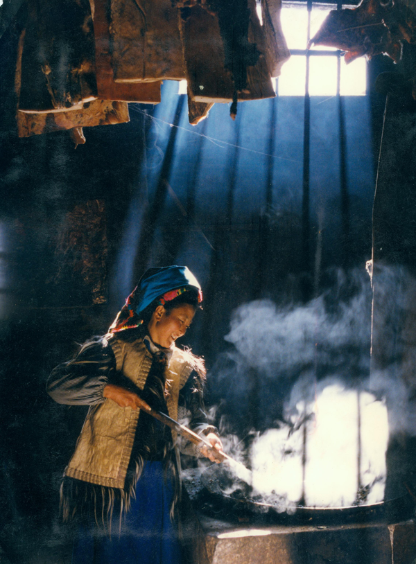 男女老少皆喜歡家釀的咂酒。青稞、大麥或玉米釀成酒,封于壇中,用時(shí)啟封,注入開水,插上竹管,輪流吸咂,邊飲邊加清水,直至味淡。普遍吸蘭花煙。