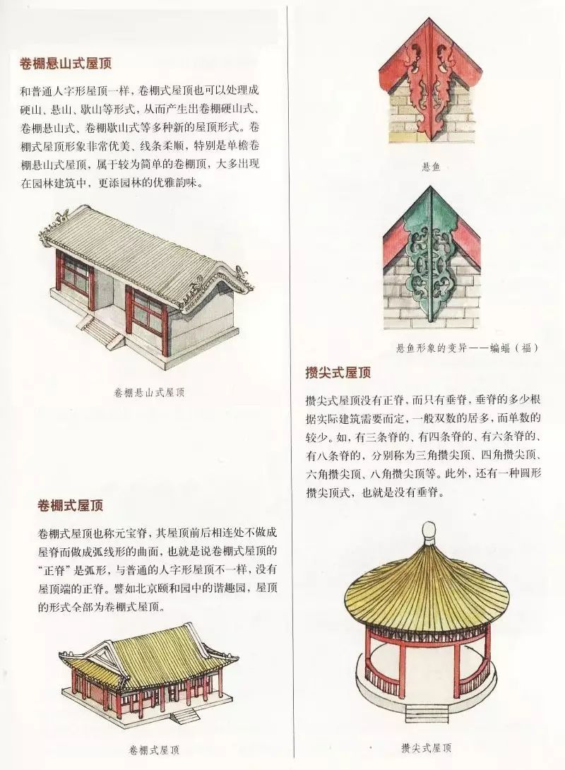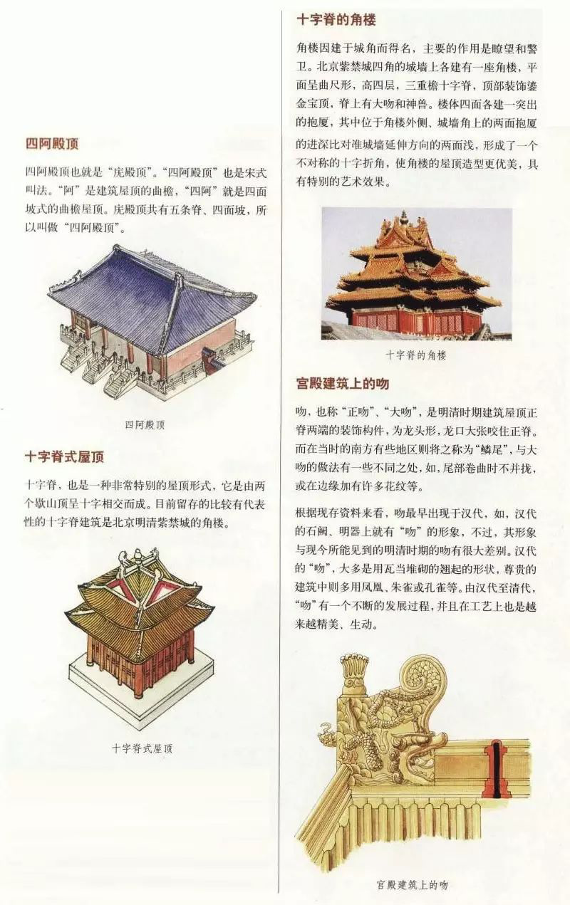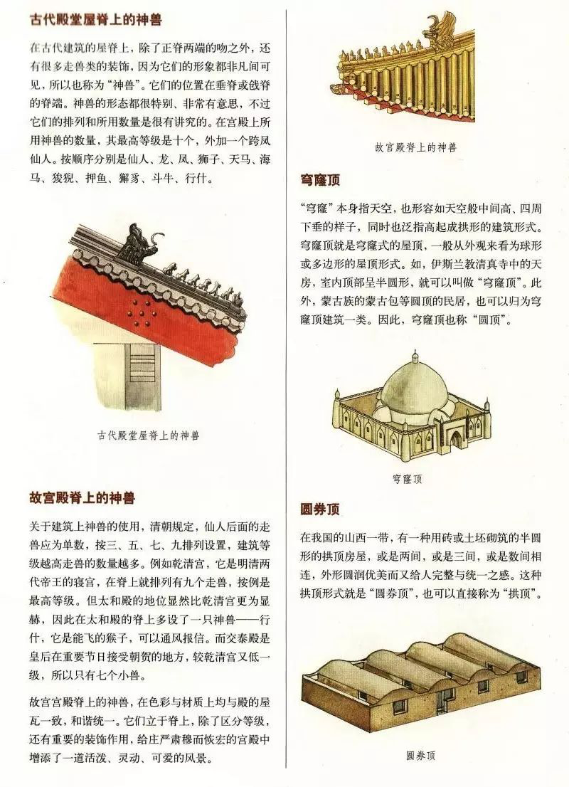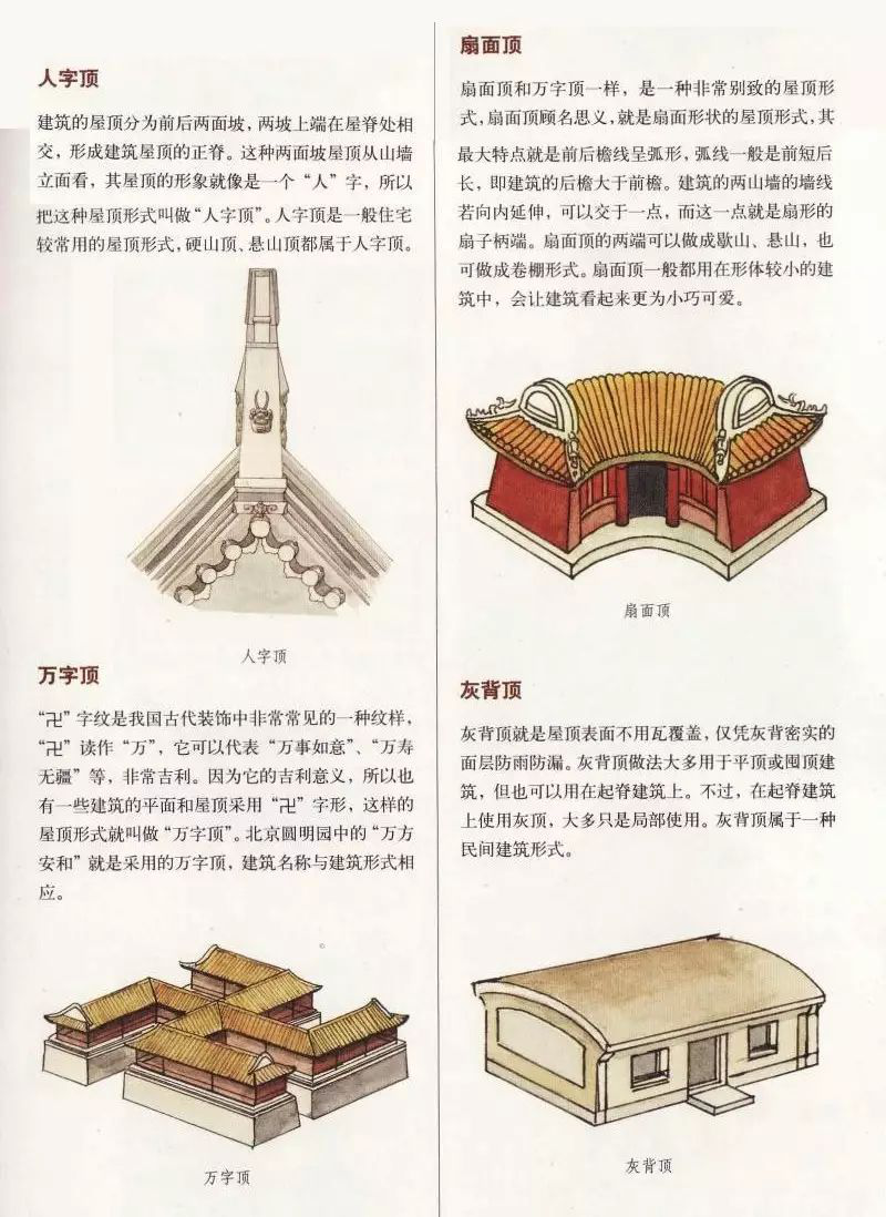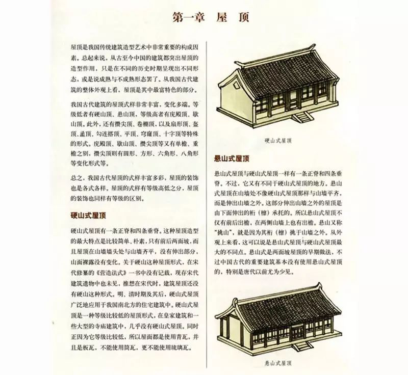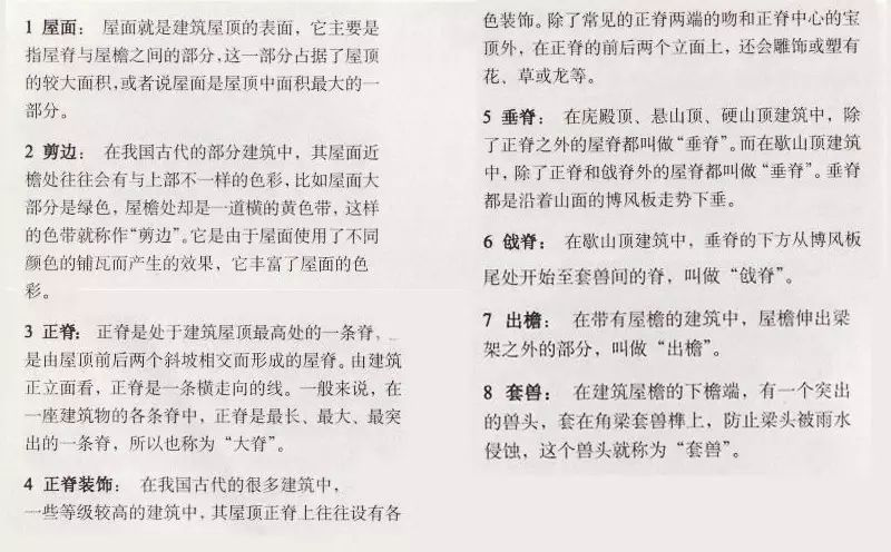 中國古代建筑屋頂不僅樣式多,而且組成部分也有好幾種,主要由屋面、屋脊等部分組成,而且有嚴(yán)格的等級制度。