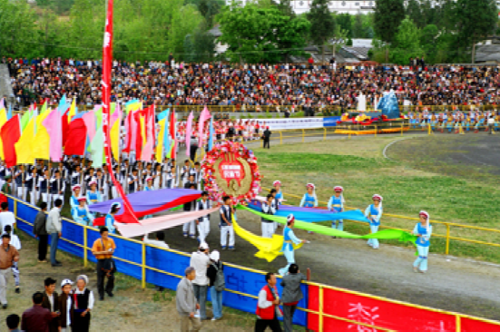三月街又名“觀音市”,是云南白族盛大的節(jié)日和街期。每年夏歷三月十五至二十日在大理城西的點蒼山腳下舉行。最初它帶有宗教活動色彩,后來逐漸變?yōu)橐粋€盛大的物資交流會。明清時期,四川、西藏、江南各省都有商人到此貿易。它不僅是個交換場所,還是表演各種舞蹈和賽馬、競技的樂園。中華人民共和國成立后,三月街已發(fā)展成滇西各族人民一年一度繁榮的物資交流和民族體育文藝大會,對加強民族團結、促進民族間的經濟文化交流,起了積極的作用。