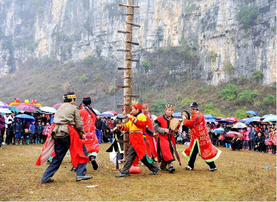師公,壯語叫公篩或尸公,是盛行于廣西壯族地區(qū)的民間宗教職業(yè)者之一。對(duì)于師公的歸屬,學(xué)術(shù)界有不同的說法.一種說法認(rèn)為,師公淵源于古代的巫術(shù), 屬巫教范疇,或稱梅山教,后兌變成儺教,以儺教這種形式出現(xiàn),主要分布在湖南、江西和嶺南一帶的越族人當(dāng)中。分布在廣西的儺教就演變成尸公教(男神職人員叫尸公,女叫巫婆),現(xiàn)在稱之為師公教。在發(fā)展過程中深受道教影響,逐步形成了一種以壯族原始宗教為主,兼蓄道教部分內(nèi)容的古老民族宗教。