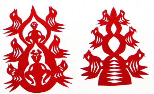 和林格爾剪紙有著悠久的發(fā)展歷程,世世代代在這里生活的北方游牧民族開(kāi)創(chuàng)了這里的剪紙藝術(shù)。和林格爾歷史上有眾多民族在這塊土地上生息繁衍,是北方游牧民族和中原農(nóng)耕民族交匯融合的重要地區(qū)之一,先后有土方、鬼方、獫狁、樓煩、林胡、匈奴、突厥、鮮卑、烏桓、契丹、女真、蒙古、滿等北方民族駐牧;后又有清代著名的“走西口”——清朝向西北用兵,在和林格爾開(kāi)辟驛站,大力開(kāi)發(fā)西部,山西、陜西等地農(nóng)民紛紛來(lái)此開(kāi)荒,在此定居,農(nóng)耕文化與草原文化再一次融合。這些為和林格爾剪紙的創(chuàng)作提供了肥沃的土壤;繼而逐漸形成了和林格爾剪紙獨(dú)具特色的藝術(shù)形態(tài)。目前,和林格爾縣 13 個(gè)鄉(xiāng)鎮(zhèn),4 萬(wàn)農(nóng)戶,僅有 18 萬(wàn)多人口的和林格爾縣擁有業(yè)余剪紙人員超過(guò) 5000 人,年齡最大的近百歲,最小的僅有七八歲。