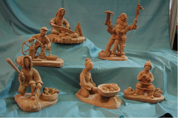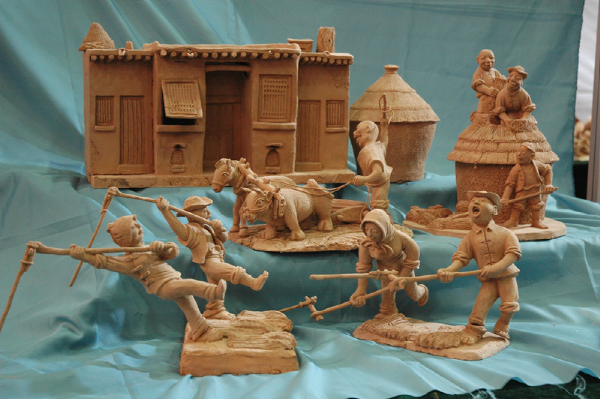 泥塑藝術(shù)是我國一種古老常見的民間藝術(shù)。它以泥土為原料,以手工捏制成形,或素或彩,以人物、動物為主。不同的民間風(fēng)俗,流傳著很多動人的傳說故事,這些構(gòu)成了泥塑藝術(shù)的精神內(nèi)核。民間泥塑的用途主要有祈子延壽、納福招財、驅(qū)邪避災(zāi)和裝飾擺設(shè)等。泥塑成本低,費工少,是老百姓喜聞樂見的藝術(shù)表現(xiàn)形式,它往往和節(jié)令、禮儀、風(fēng)俗聯(lián)系在一起,反映的是當(dāng)?shù)剞r(nóng)村人們?nèi)粘I畹牟煌瑘鼍?,人物栩栩如生,場景鮮活生動。