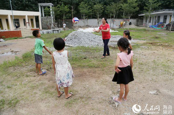 王金花在番打小學(xué)與孩子們一起玩耍