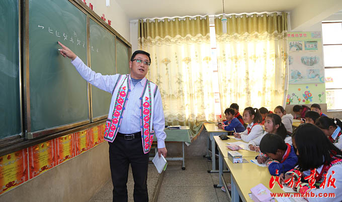 走進干凈整潔的教學(xué)樓,陣陣讀書聲漸漸清晰,原來是六年級的學(xué)生正在上彝語課??粗J真授課的彝族老師,校長杞萬開說:“建設(shè)德高業(yè)精的雙語教師團隊是我們做好雙語教育的根本保證,因此我們每年都選派優(yōu)秀教師參加云南省的雙語教師培訓(xùn),提升教師‘彝語為輔,漢語普通話為主’的雙語教育能力?!?/p>