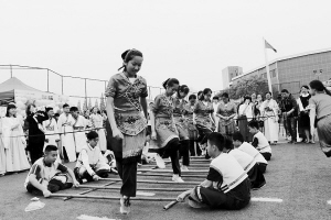 南京市第29中學初中部“2018校園民族文化節(jié)”上,學生們在跳竹竿舞。南京市第29中學初中部供圖