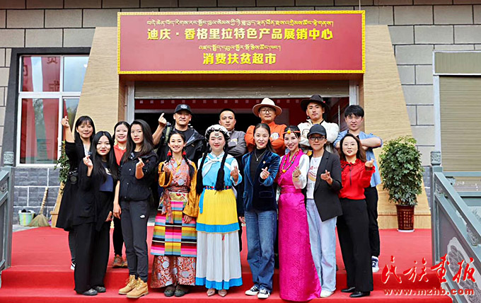 2020年7月,何永群(前左四)在迪慶·香格里拉特色產(chǎn)品展銷中心消費(fèi)扶貧超市參加活動(dòng)。