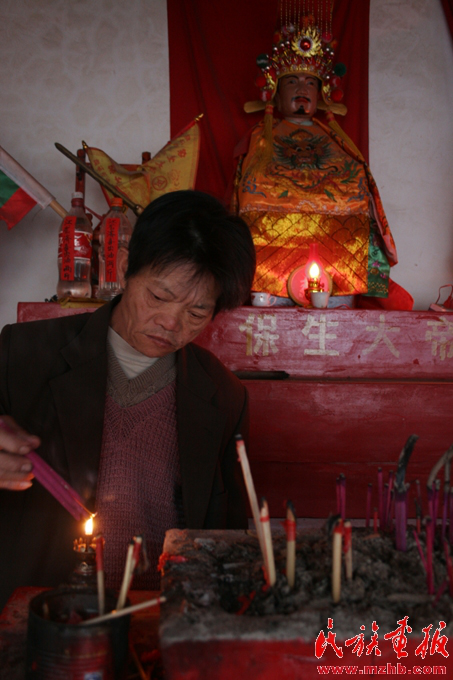 兩年來(lái),作為保生大帝廟守廟人,江云山早上起來(lái)最重要的事情就是打開(kāi)廟門(mén),給諸神上香,敬茶。除了保生大帝神外,廟里還供奉有關(guān)公和文昌君。人們一般向關(guān)公神祈求發(fā)財(cái),向文昌君神祈求兒女考上大學(xué),早日成才。江云山說(shuō),只要真心信奉,人們來(lái)年各方面的愿望都會(huì)得到神靈的保佑。