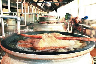 該遺產(chǎn)項(xiàng)目代表性傳承人明珠(左)指導(dǎo)瀧沐覺(jué)堪(制藥師)煎熬“五味甘露”。關(guān)確才讓 攝
