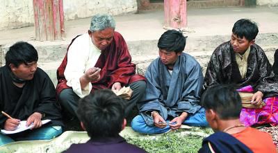 西藏藏醫(yī)學(xué)院的學(xué)生正在研讀記載著藏醫(yī)藥浴法相關(guān)知識(shí)的《四部醫(yī)典》。劉罡 攝