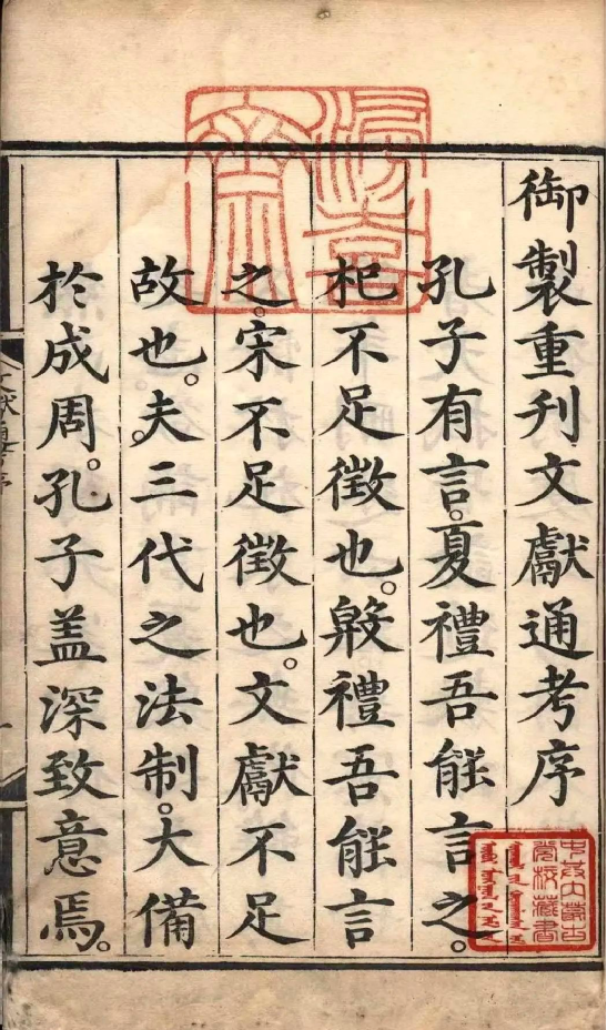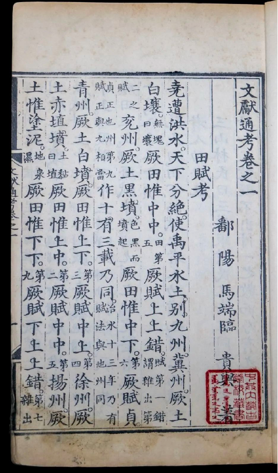 《文獻通考》所述歷代典章制度,上起上古,下至南宋寧宗嘉定末年。該書立目參照《通典》,并有所發(fā)展。全書分為二十四考,每一考前有小序,說明著述的成規(guī),考訂的新意,每考之下又分為若干子目,子目內容皆按時間先后排列。撰寫體例是按文、獻、考三個層次排列,凡頂格排行者,即所謂“文”,也就是“敘事”部分。凡低一格排行者,即所謂的“獻”,也就是“論事”部分。凡低兩格排行者,即所謂“考”,也就是作者自己的議論,其內容包括指點歷史演變的線索、評判是非、考辨史料和解釋名物等。