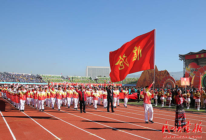 云南省少數(shù)民族運(yùn)動(dòng)會(huì)國旗、會(huì)旗方陣入場