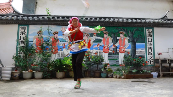 傳統(tǒng)文化時(shí)時(shí)學(xué),白族舞蹈代代傳。小小的霸王鞭看似簡單,里面卻包含了白族人民田間勞作的智慧。用自己的努力,言傳身教地教授霸王鞭,這愚公移山般的精神也是傳承人的智慧?!敖裉煜挛?點(diǎn),我還要去江尾一趟,教他們的繞三靈團(tuán)隊(duì)跳霸王鞭”,何松康說。