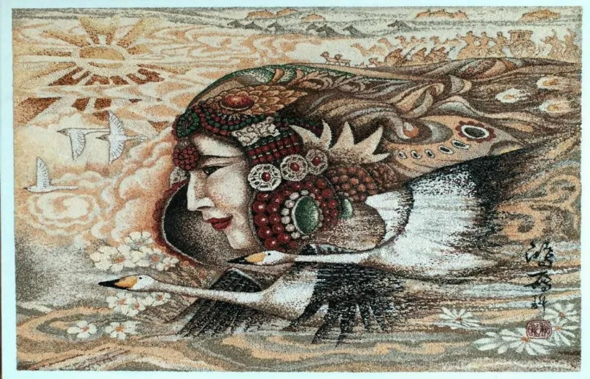 草原五谷畫起源于唐代,唐朝滅亡后的五代時期,流傳至中國北方,到了遼王朝建立后,開始在遼國中心區(qū)域——通遼市地區(qū)興起,并形成五谷畫的獨特支系,具有濃郁游牧特征的草原五谷畫派,在遼王朝存續(xù)的100多年里,是它的黃金期,遼王朝滅亡后,草原五谷畫在漫長的歲月里一直在民間傳承不為人知,至今已有千年歷史的草原五谷畫再現(xiàn)于世人面前。