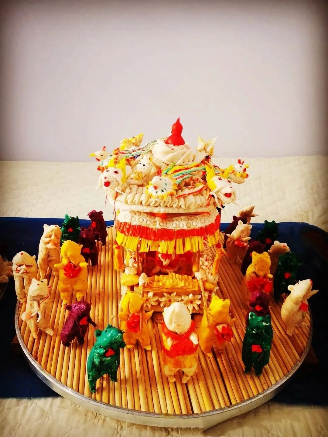 由于托克托縣地理位置獨特,早在清朝時期是塞外聞名的“水旱碼頭”,這里交通便利,經(jīng)濟繁榮??涤呵瑫r期兩翼土地的放墾,成為口外漢族村落形成的主要原因。到乾嘉之際,土默川縱橫900余里田陌相望,農(nóng)商兩業(yè)日臻繁盛。大批山西、陜西、河北等地農(nóng)民、商人、小手工業(yè)者紛紛來到這里種田、經(jīng)商及傳授手工技藝。從而晉陜地區(qū)的捏面人手工技藝也被帶到托克托縣地區(qū),在這里漢族和少數(shù)民族(主要是蒙古族)相互融合,形成了獨具特色的托克托縣面塑技藝。內(nèi)蒙古自治區(qū)級非物質(zhì)文化遺產(chǎn)代表性傳承人薛籽女,托克托縣章蓋營村人,是自治區(qū)級托克托縣面塑傳承人,下面展示的是她創(chuàng)作的面塑作品:《老鼠娶親》、《鼠年抗疫情》、《千手觀音》。