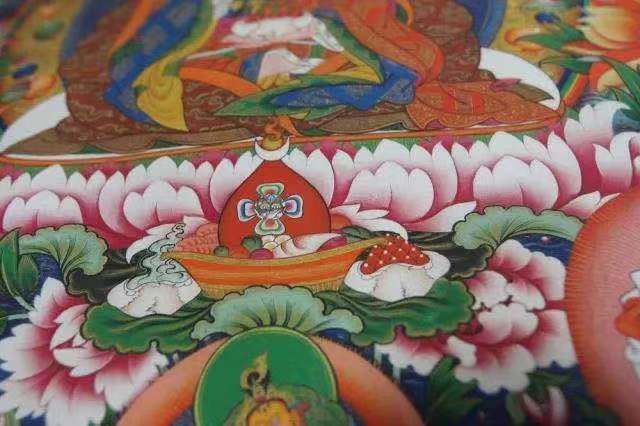 900多年前流傳于衛(wèi)藏地區(qū)(現(xiàn)山南)的齊烏崗派唐卡,由雅堆·齊烏崗巴創(chuàng)立,與嘎瑪嘎赤畫(huà)派、勉塘畫(huà)派、欽孜畫(huà)派、埃赤畫(huà)派并稱“唐卡五大畫(huà)派”。齊烏崗派特點(diǎn)為人物體形飽滿、生動(dòng)細(xì)膩,色彩以棗紅、橘紅暖色系為主;中央的主尊突出,背景多用卷草紋作為裝飾。特別是,齊烏崗派唐卡的佛像肩膀旁都有象征翅膀的“三角”,源于創(chuàng)始人齊烏崗巴行動(dòng)靈敏,亦被稱作“齊烏派”。
