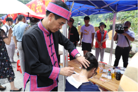 本次活動以2020年“文化和自然遺產日”的“非遺傳承,健康生活”為主題,重點圍繞傳統(tǒng)醫(yī)藥項目保護,普及“非遺”知識和健康生活理念,營造全社會共同參與、關注和保護傳承優(yōu)秀傳統(tǒng)文化濃厚氛圍而開展。邀請十位瑤醫(yī)藥傳承人帶領40多位瑤醫(yī)弟子各顯神通,在現(xiàn)場開展非遺項目義診活動,為游客免費問疹,展示泡藥療法、針灸療法、燈草療法、坐浴療法、拉伽通灸療法等10種技法?,幷锩恳粦羧思夷贸瞿檬纸^活在自家進行現(xiàn)場展示,黃泥鼓制作、樹葉豆腐制作、瑤族織繡技藝、釀酒技藝、舂糍粑、原創(chuàng)歌曲展示等,豐富多彩的各種技藝,讓游客流連忘返。