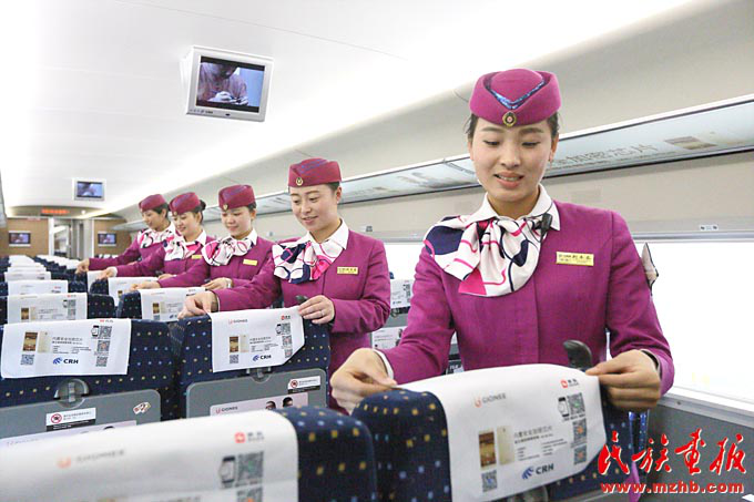 擔任貴陽至昆明高鐵值乘任務的“動妹”們進行系列安全演練和培訓,確保為旅客提供優(yōu)質(zhì)服務(張貴忠 攝影)