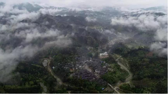 4月14日,無人機(jī)航拍的三江侗族自治縣洋溪鄉(xiāng)高露村中寨屯美景