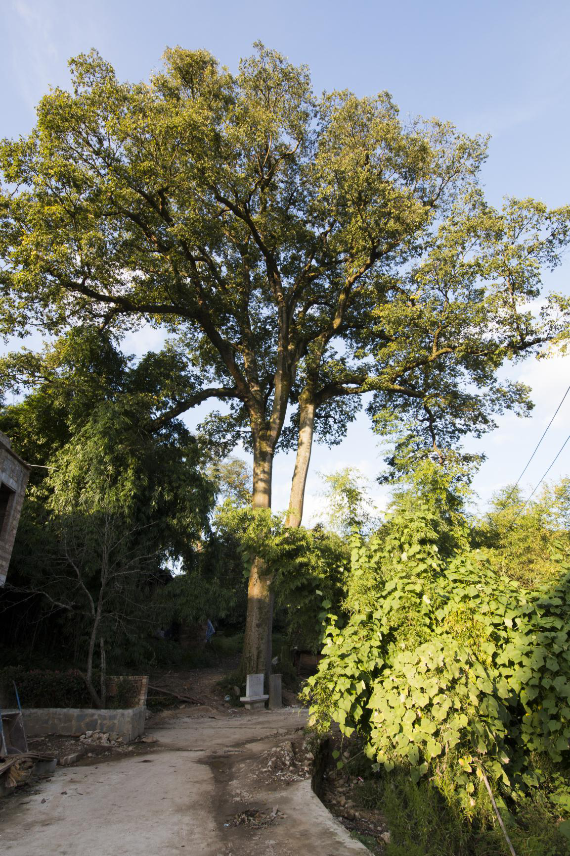 批林村作為典型的少數(shù)民族村寨,較多的保留了民族文化。 村寨文化較為重要的一項(xiàng)是,信仰寄托。信仰寄托指的是村民將對于天地、先祖、神鬼媒介選擇為某一特定的事物。批林村的古樹,正是這樣的代表。批林村的古樹,樹干筆直,樹皮堅(jiān)硬粗糙,樹干上已有苔綠攀附。時(shí)光如梭,滄海桑田,批林村的古樹依舊在迎風(fēng)臨雨,昂然挺立。依舊作為批林村人的信仰寄托。