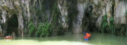 水洞長1000余米,半是人工半天然,登舟入洞,借助稀疏的燈光和導(dǎo)游的手電筒辨認(rèn)著一處一處各各不同的景物,頗有一點神秘之感。洞盡船出,豁然開朗,但見茂竹修篁叢叢簇簇,一泓綠水微波不興,野趣天成,靜謐無聲,此處名“竹林翠溪”,宛如一世外桃源。旱洞共三層,滿布著形態(tài)各異的石鐘乳、石筍、石柱、石幔,其第三層洞廳軒敞,一座天然石橋飛架兩懸崖間,人稱“奈何橋”,橋下即是深不可測的陰潭,景觀之奇特,令人叫絕。旱洞出口處,有苗寨一座,是專為旅游者興建的,游人盡可在此親身體驗一次苗家的婚俗。